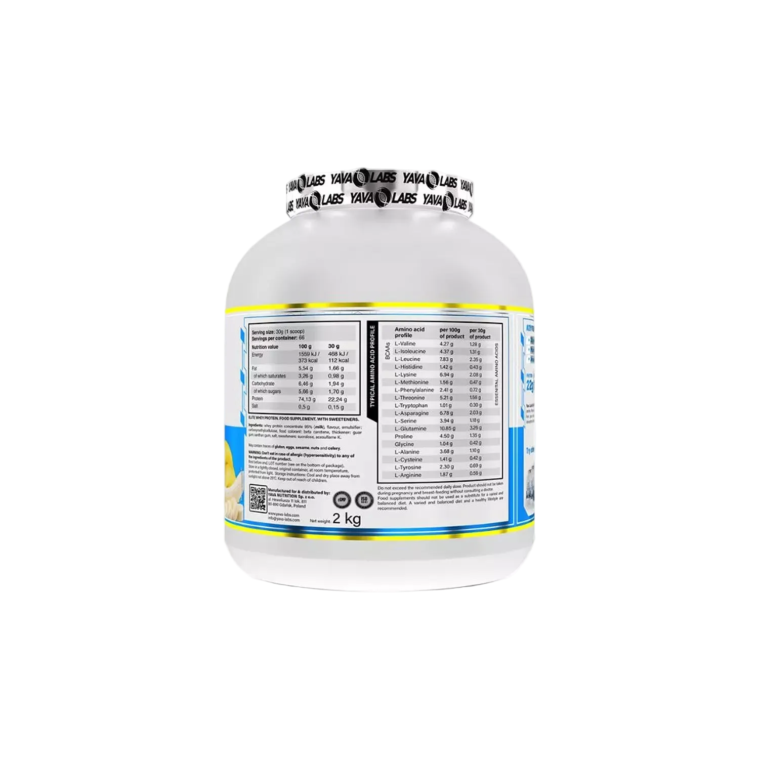 What is Yava Labs Whey Protein? Yava Labs Whey Protein is a high-quality whey protein powder designed to support lean muscle growth, recovery, and overall performance. It provides essential protein to help athletes and fitness enthusiasts achieve their training goals. Who Needs It? Athletes and bodybuilders aiming to build lean muscle Fitness enthusiasts seeking high-quality protein for recovery Anyone needing an easy and convenient protein source Key Nutrition (per serving) 2430g Protein Low in sugar and fat 66 Servings per container When to Use Post-workout to support recovery and muscle growth Between meals to increase daily protein intake How to Use Mix 1 scoop with 200250ml water or milk. Shake or blend until smooth. Take 12 servings daily depending on your protein needs. Safety & Allergy Warning Contains milk ingredients; check for allergies Keep out of reach of children Consult a healthcare professional if pregnant, nursing, or under medical treatment Authenticity guaranteed always check for official Yava Labs packaging. Country of Origin USA What is Yava Labs Whey Protein? Yava Labs Whey Protein is a high-quality whey protein powder designed to support lean muscle growth, recovery, and overall performance. It provides essential protein to help athletes and fitness enthusiasts achieve their training goals. Who Needs It? Athletes and bodybuilders aiming to build lean muscle Fitness enthusiasts seeking high-quality protein for recovery Anyone needing an easy and convenient protein source Key Nutrition (per serving) 2430g Protein Low in sugar and fat 66 Servings per container When to Use Post-workout to support recovery and muscle growth Between meals to increase daily protein intake How to Use Mix 1 scoop with 200250ml water or milk. Shake or blend until smooth. Take 12 servings daily depending on your protein needs. Safety & Allergy Warning Contains milk ingredients; check for allergies Keep out of reach of children Consult a healthcare professional if pregnant, nursing, or under medical treatment Authenticity guaranteed always check for official Yava Labs packaging. Country of Origin USA